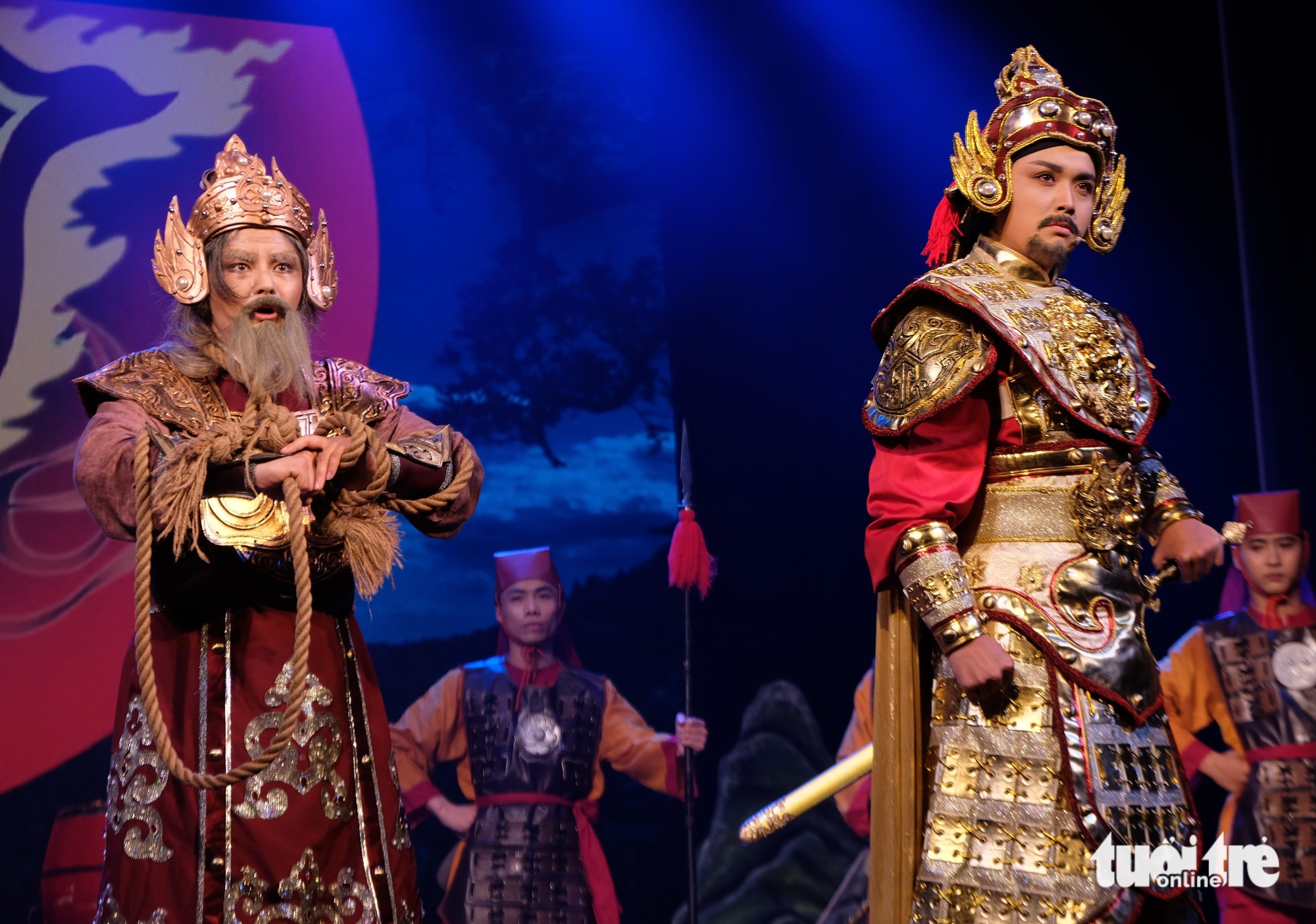 Kép trẻ Lâm Minh Nghiêm (phải) cũng chứng tỏ sự tiến bộ trong nhân vật Trần Hưng Đạo - Ảnh: LINH ĐOAN