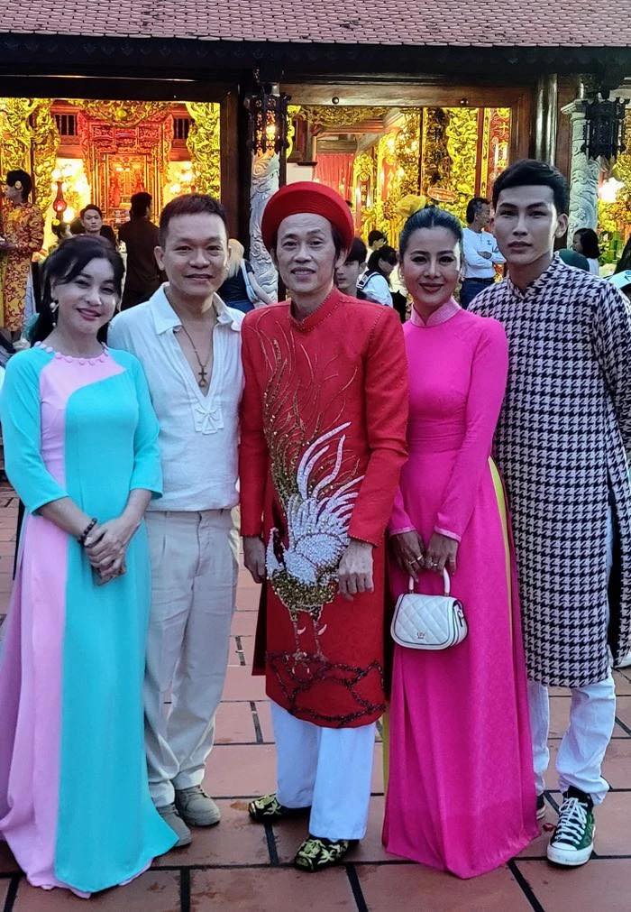 Nghệ sĩ Hoài Linh mặc áo dài đỏ truyền thống trong ngày lễ Giổ Tổ sân khấu